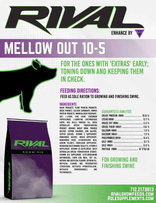 Feed as sole ration to growing and finishing swine.