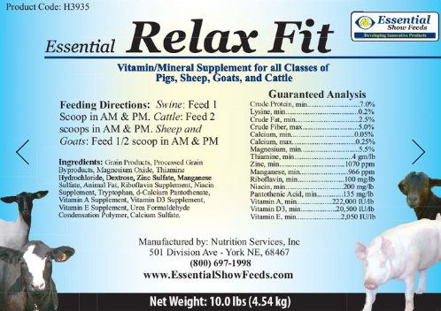 Helps with stress in show animals. It will help make the animal calmer in the show ring. Essential Relax Fit uses a variety of natural calming agents in high concentrations to provide your animal with a lasting calm (No withdrawal needed).